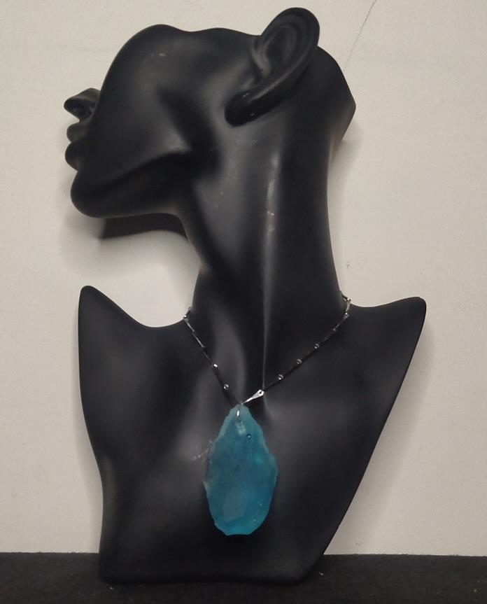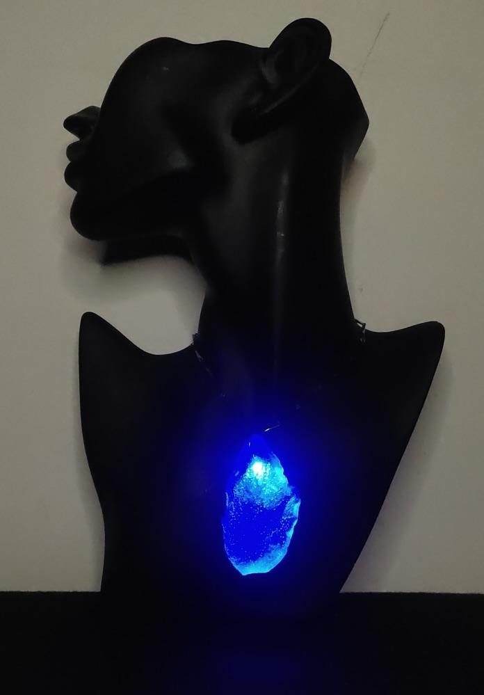 This piece of blue crystal shaped pendant looks directly borrowed from the mystic land. When switched on, its light blue hue falls on your neck and face creating a fancy and romantic aura around you. When switched off it still shows up as a beautiful rare light blue pendant with its crystal like texture.
