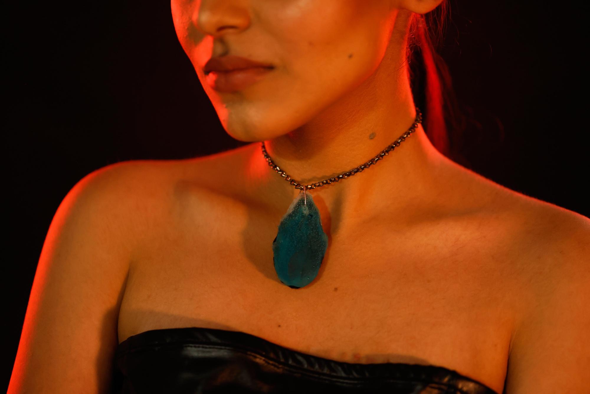 This mystical blue pendant will enhance beauty of your pictures and selfies in the dark with its bluish glow.
