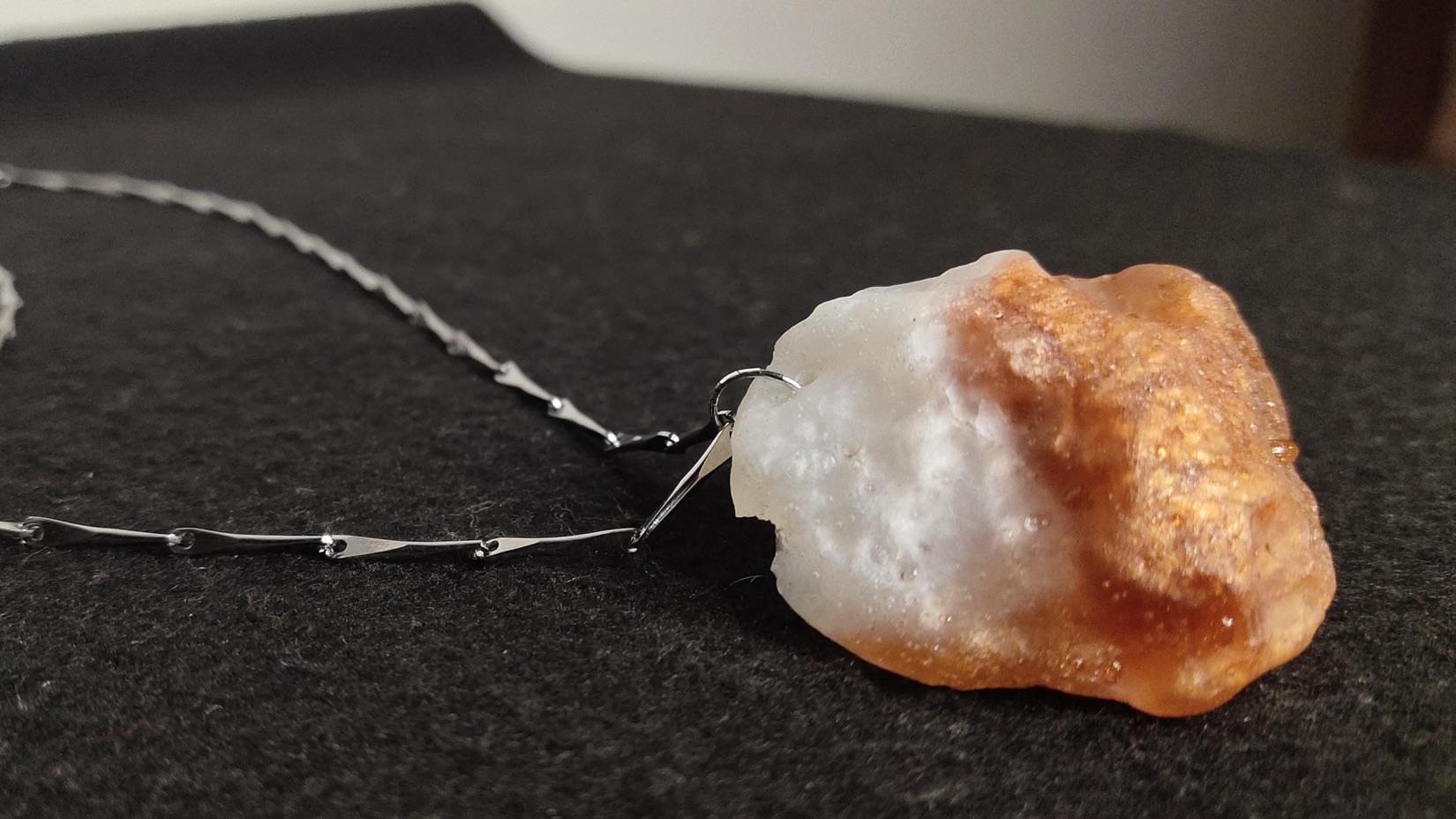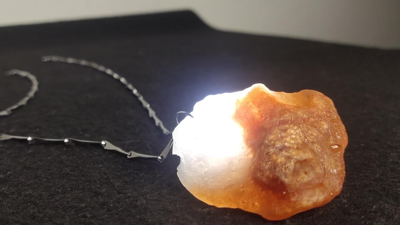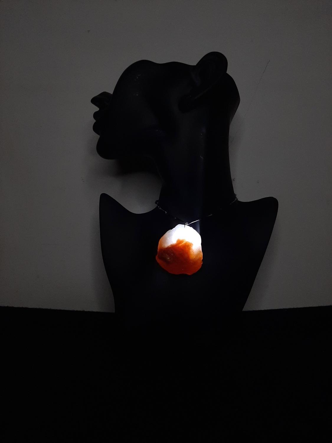 This piece of white-brown cyrstal stone shaped pendant looks directly borrowed from the fantacy land. During the day it makes everyone wow over your premium taste of casual jewellery. During the night, when you switch it on, it turns all eyes towards you as it glows like a mystic stone and shows its color bright and clear even in your night photos. The warm light emiting from within the stone lands up on your face and neck and creates a nice romantic aura around you.