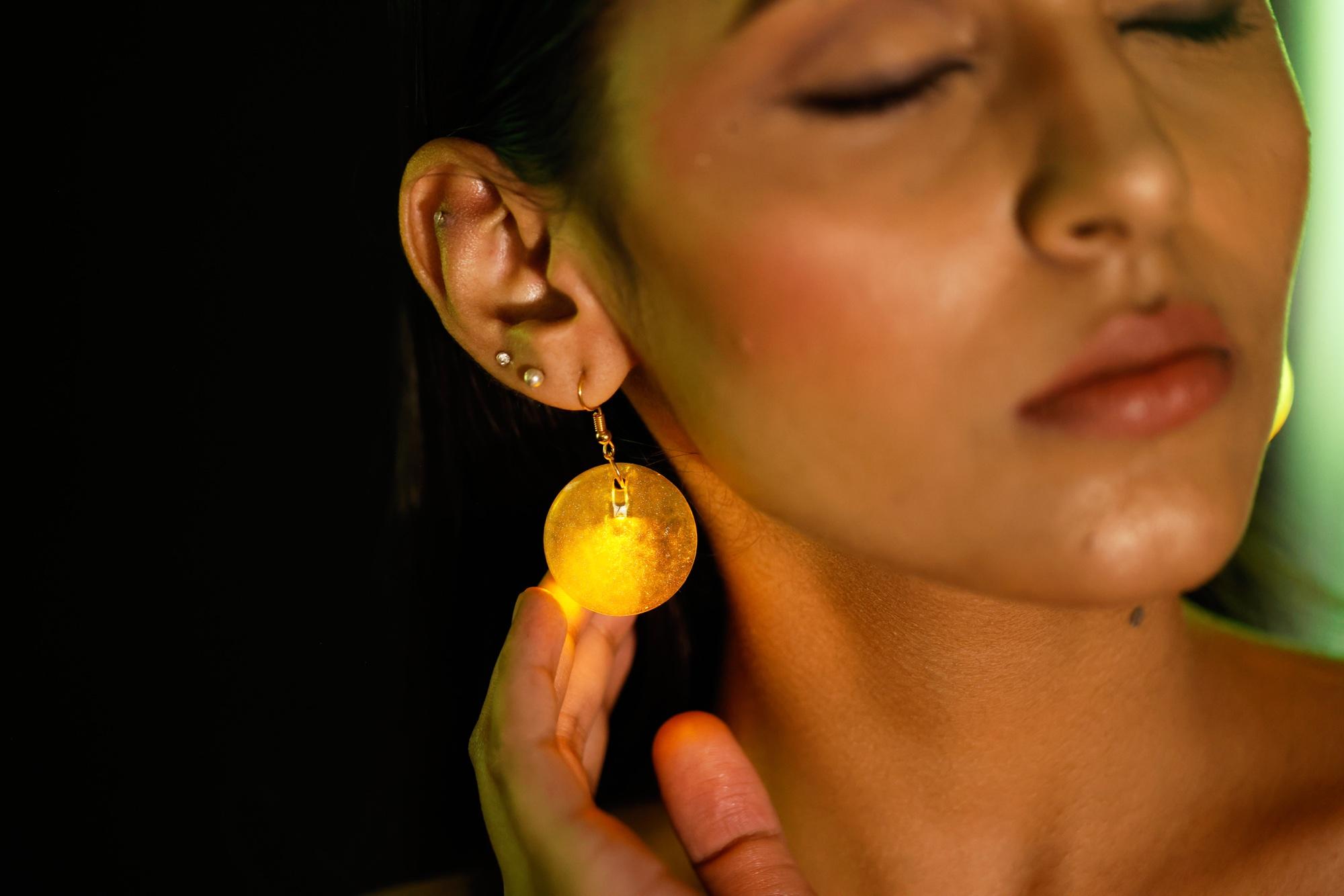 Yellow premium glow in the dark led earing for night parties, beach parties, romantic dinners, fun night outs to make you shine like a goddess.